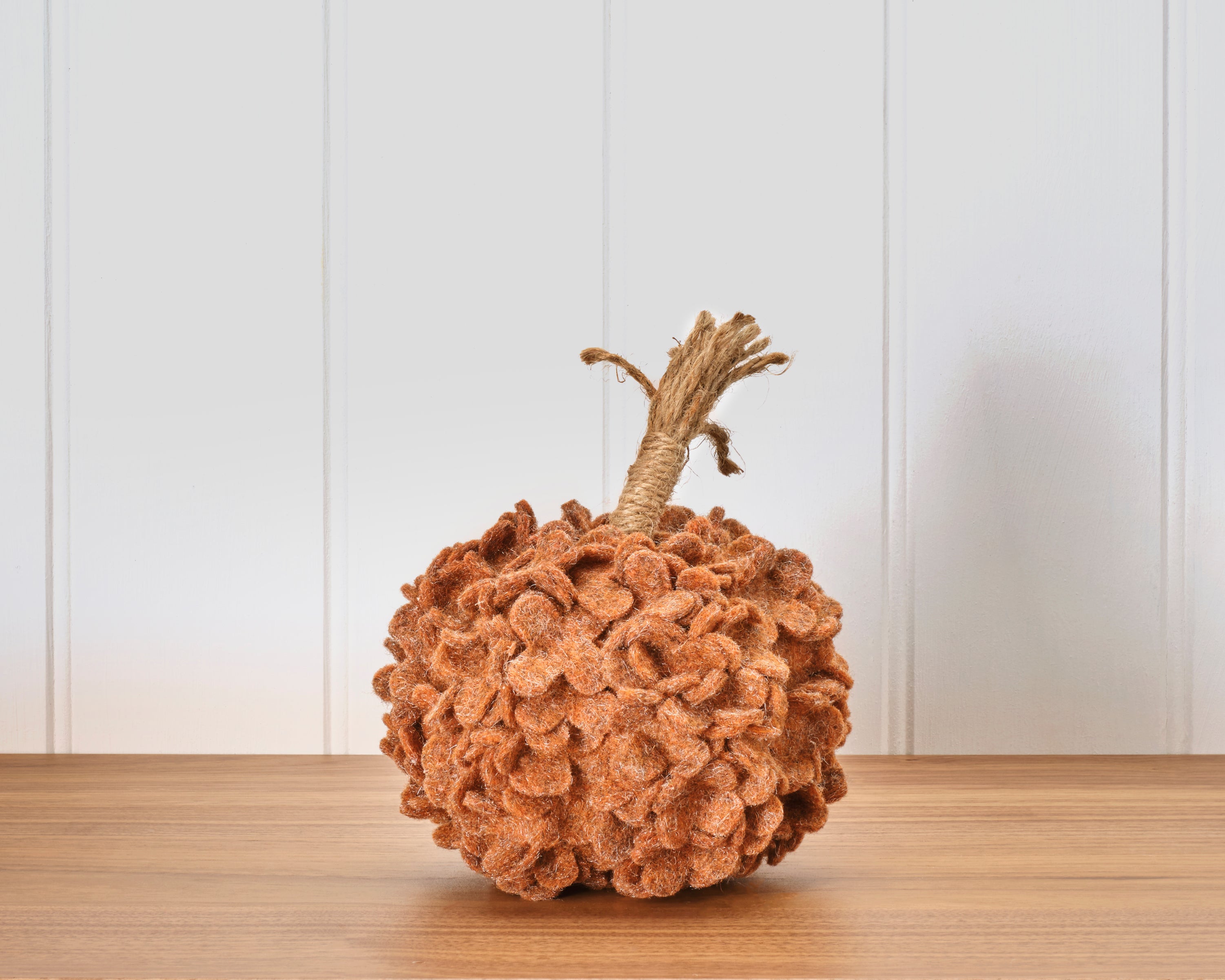 Add a cosy autumn touch with this medium, rustic felt burnt orange pumpkin. With its medium size and unique design, it’s perfect for seasonal displays and aligns beautifully with the 2025 colour trend of burnt orange. It brings warmth and charm to any setting, making it a versatile addition to your autumn décor collection.