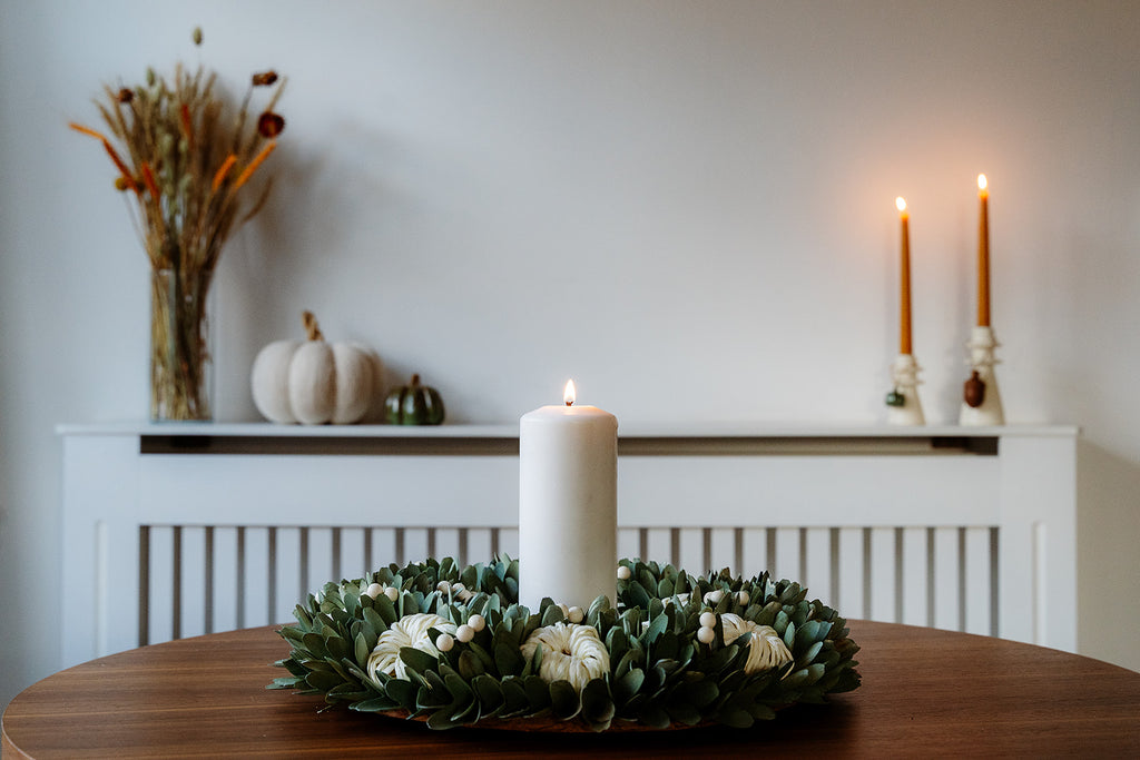 Wooden Green Pumpkin Wreath